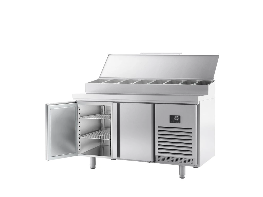 Stół chłodniczy do przygotowywania produktów piekarniczych - z 2 drzwiami - rozmiar komory EN - nadstawna ze stali nierdzewnej 9x 1/4 GN