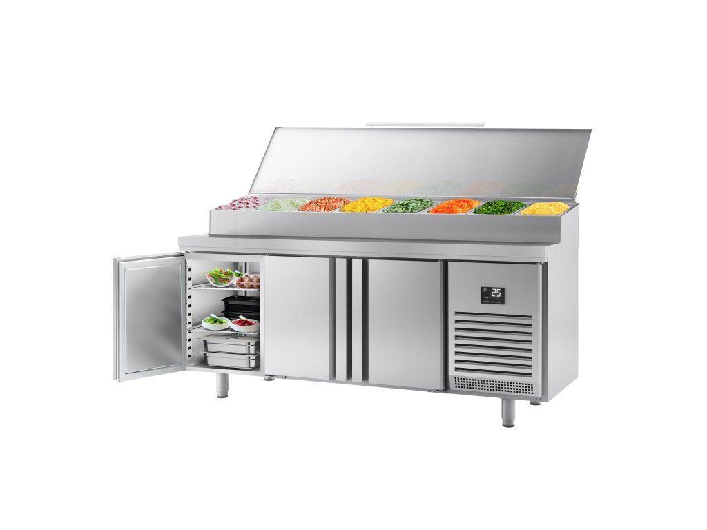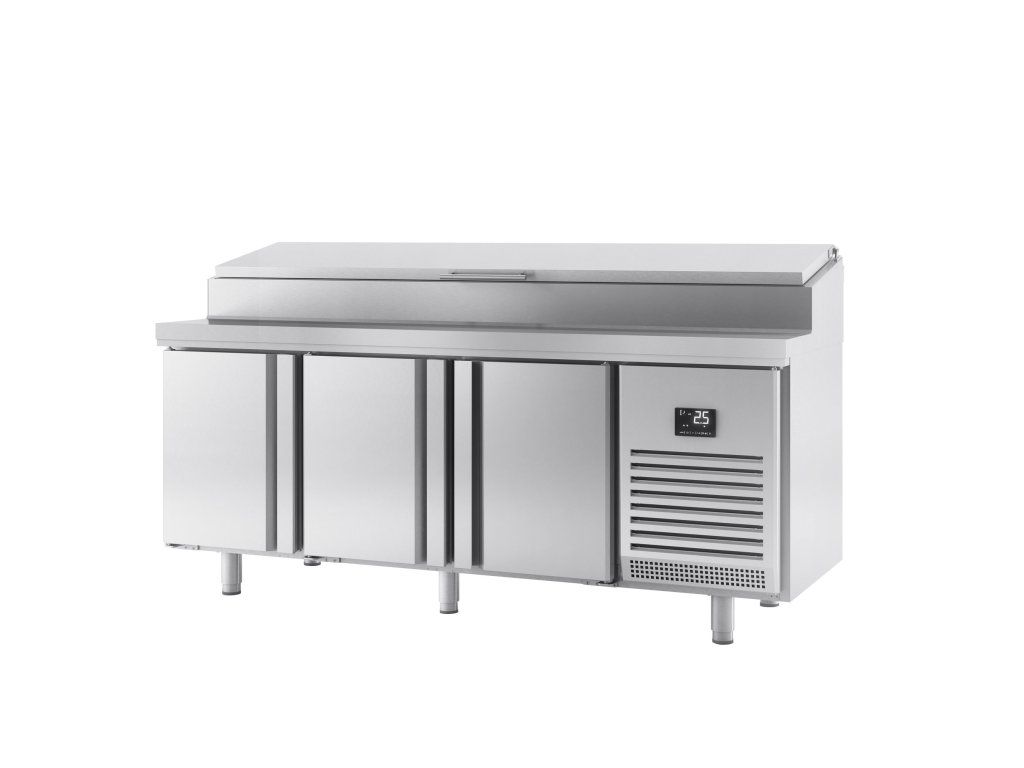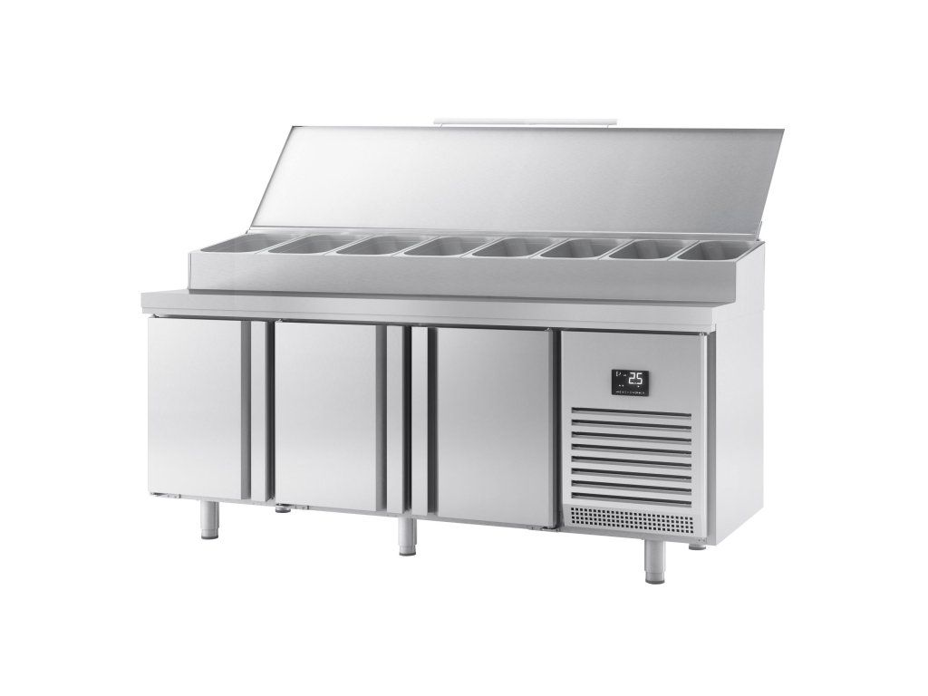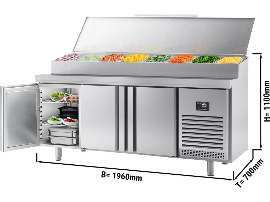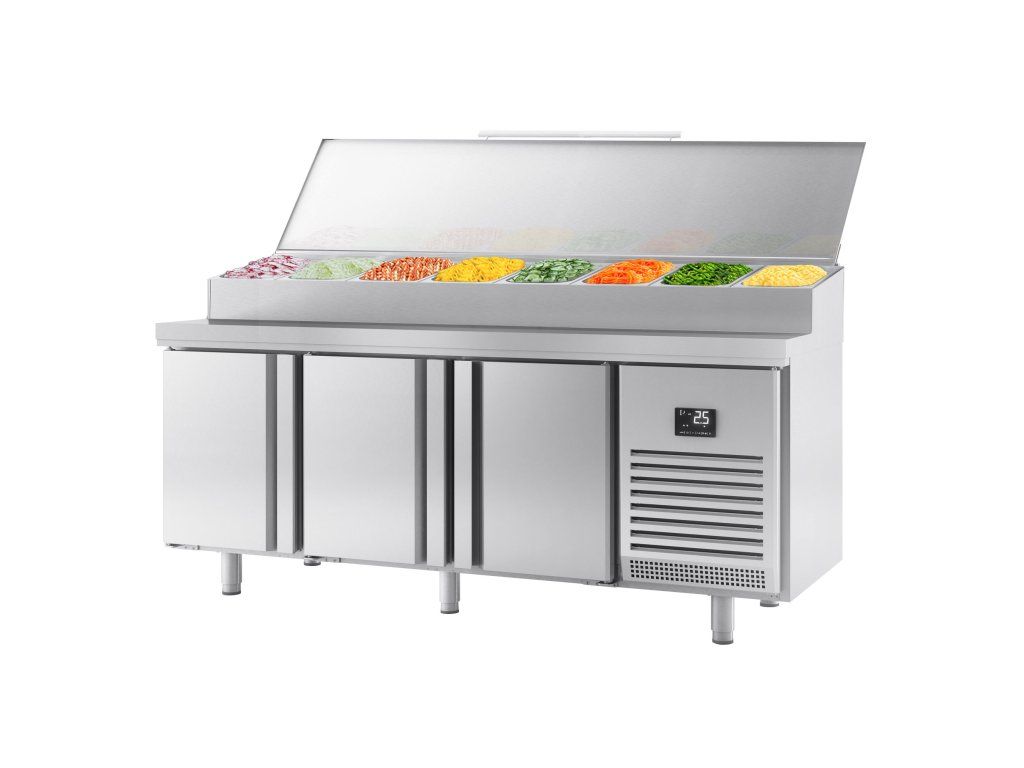 Stół chłodniczy do przygotowywania - 1960x700mm - z 3 drzwiami - nadstawna ze stali nierdzewnej 9x GN 1/3