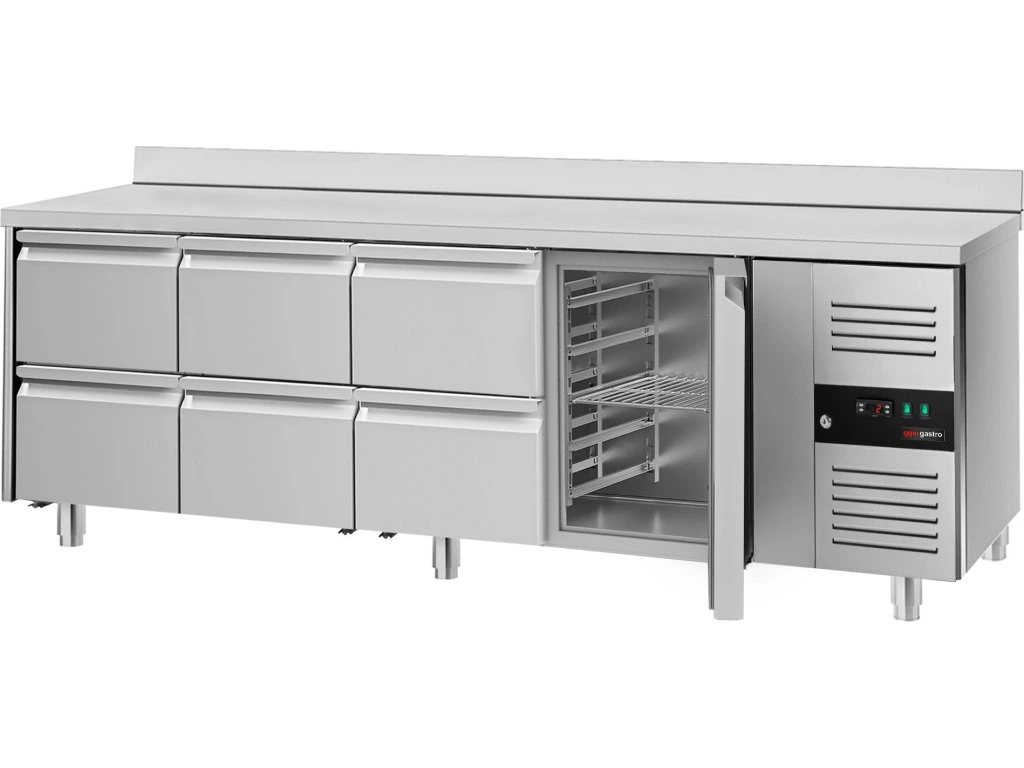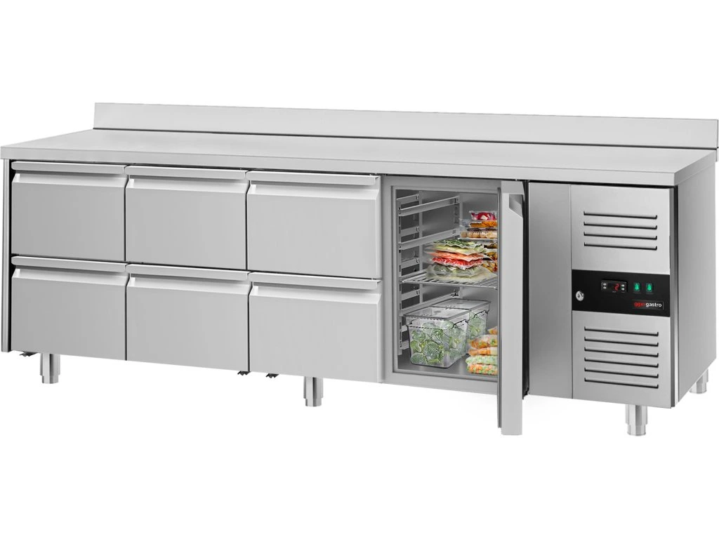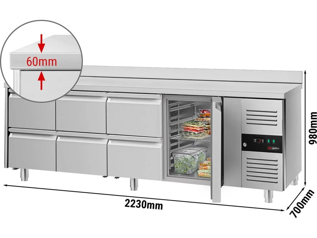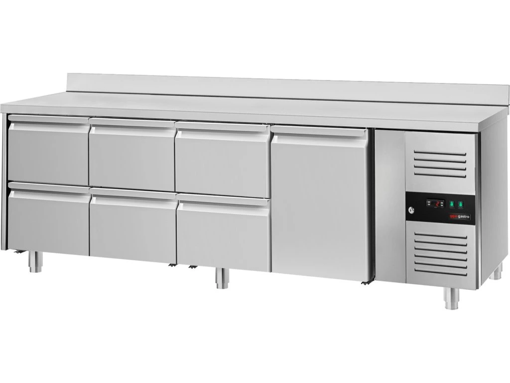 Stół chłodniczy ECO - 2230x700 mm - z 1 drzwiami & 6 szufladami & z panelem tylnym