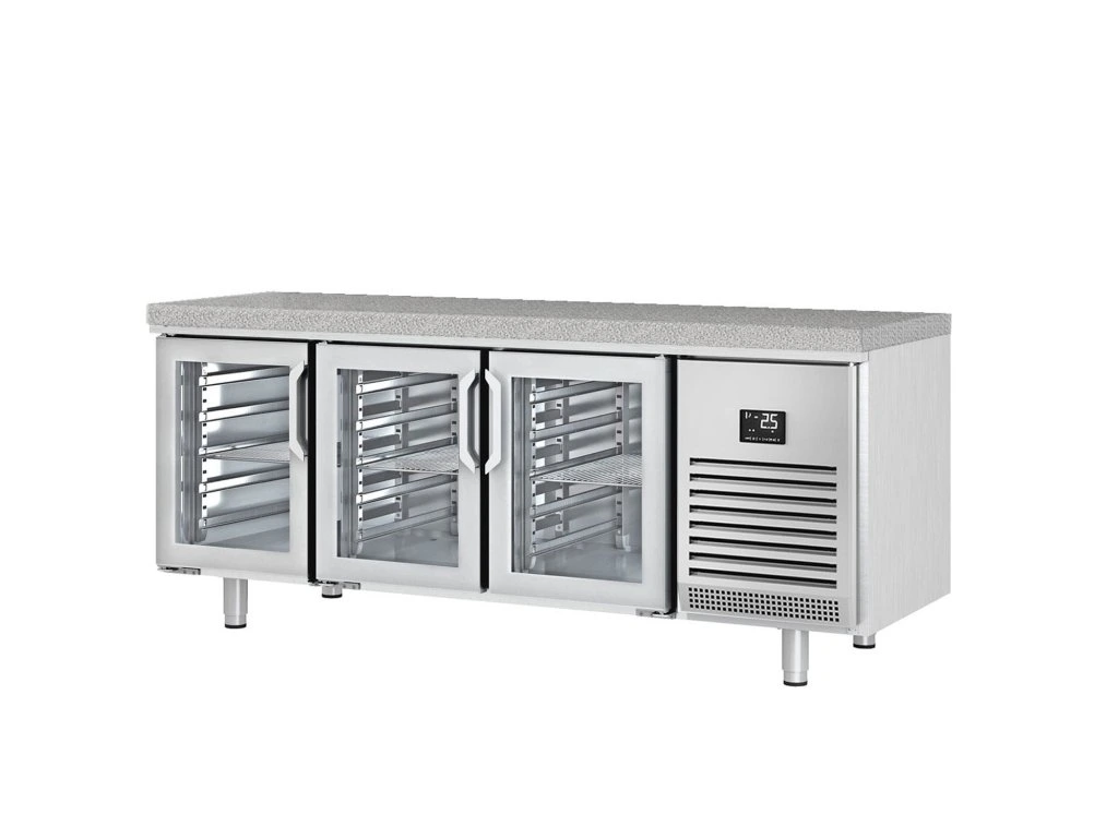 Stół chłodniczy piekarniczy PREMIUM PLUS - 2185x800mm - 3 szklane drzwi & granitowy blat roboczy