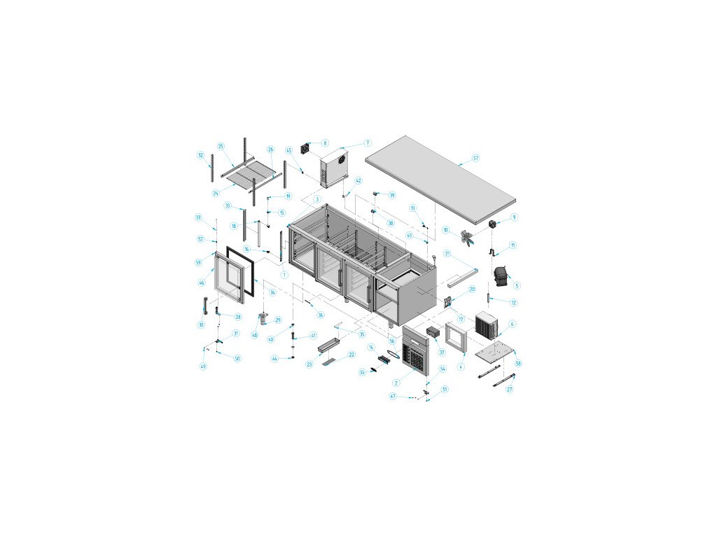 - 1 Komora chłodnicza z 4 szklanymi drzwiami