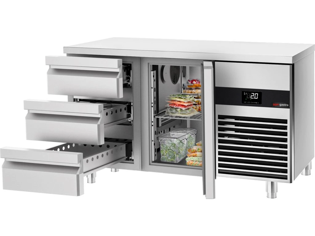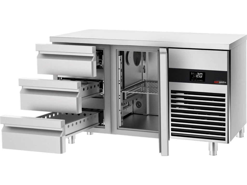 Stół chłodniczy PREMIUM - 1400x700 mm - z 1 drzwiami & 3 szufladami