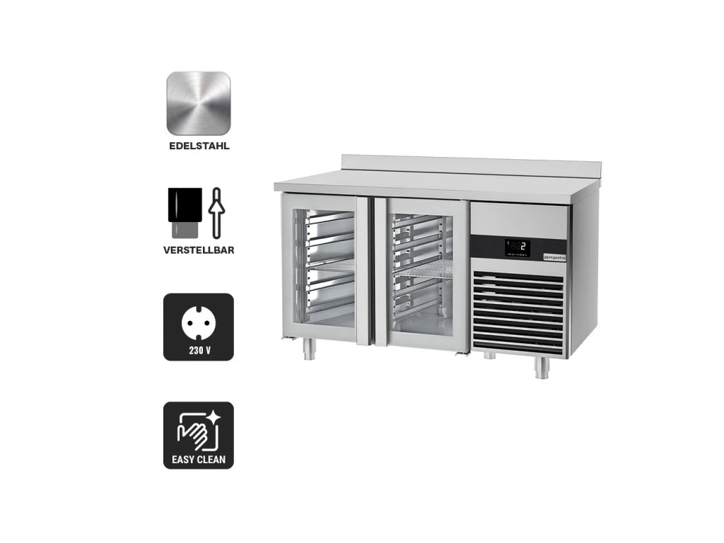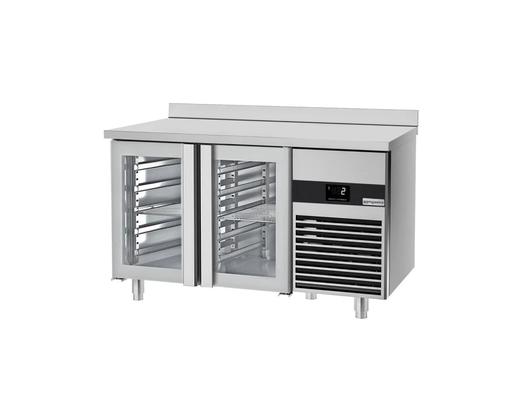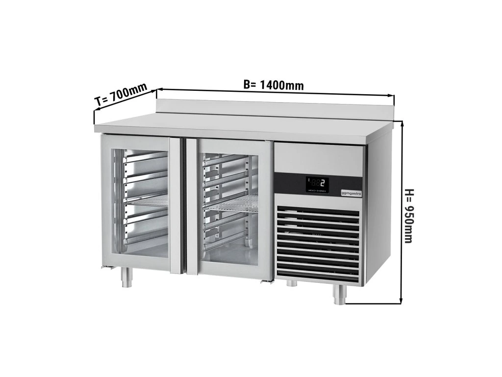 Stół chłodniczy PREMIUM - 1400x700 mm - z 2 szklanymi drzwiami & panelem tylnym