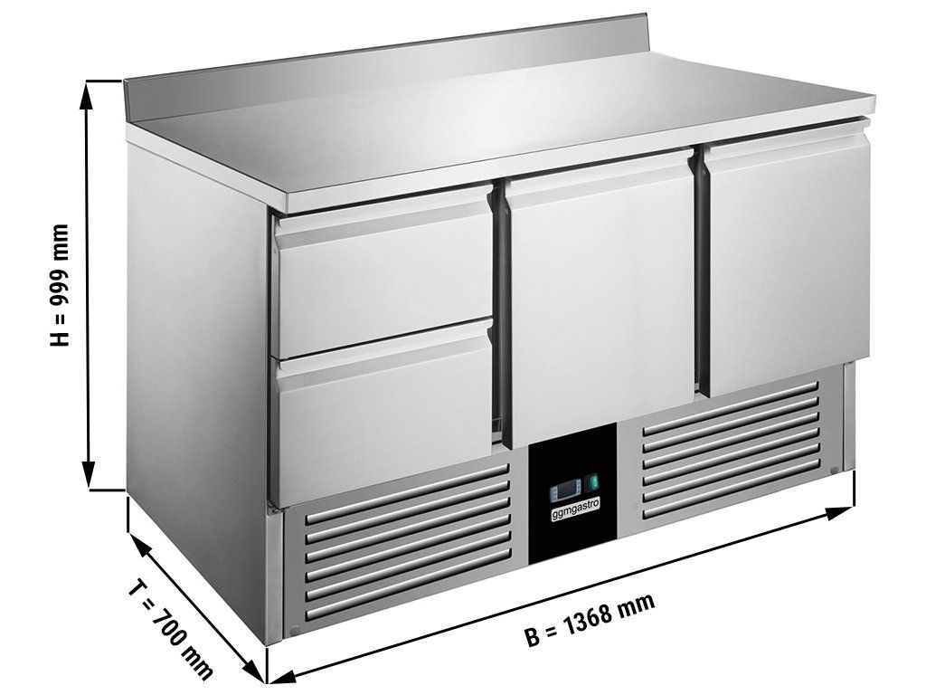 Stół chłodniczy PREMIUM - 1370x700 mm - 2 drzwi, 2 szuflady & panel tylny