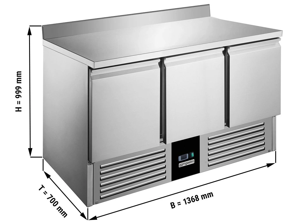 Stół chłodniczy PREMIUM - 1370x700 mm - 3 drzwi & panel tylny