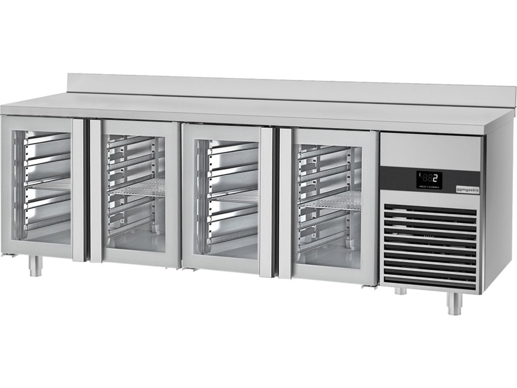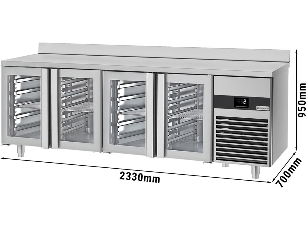 Stół chłodniczy PREMIUM - 2300x700 mm - z 4 szklanymi drzwiami & panelem tylnym