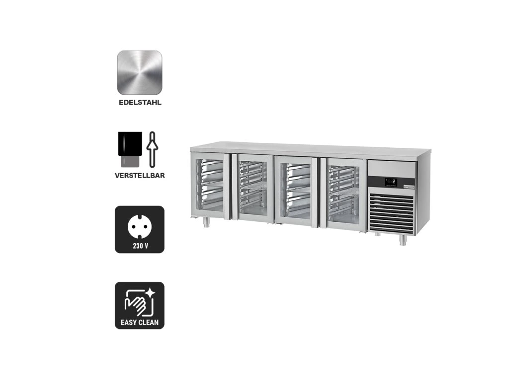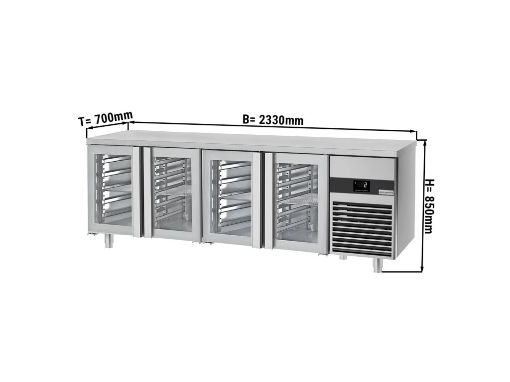 Stół chłodniczy PREMIUM - 2300x700 mm - z 4 szklanymi drzwiami