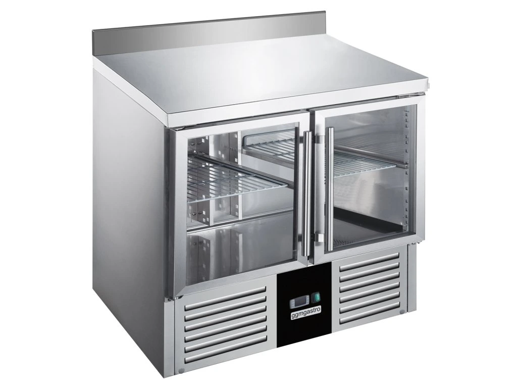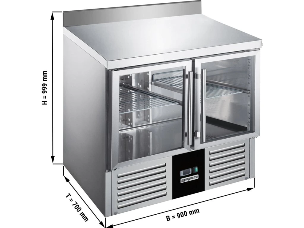 Stół chłodniczy PREMIUM - 900x700 mm - 2 szklane drzwi & panel tylny