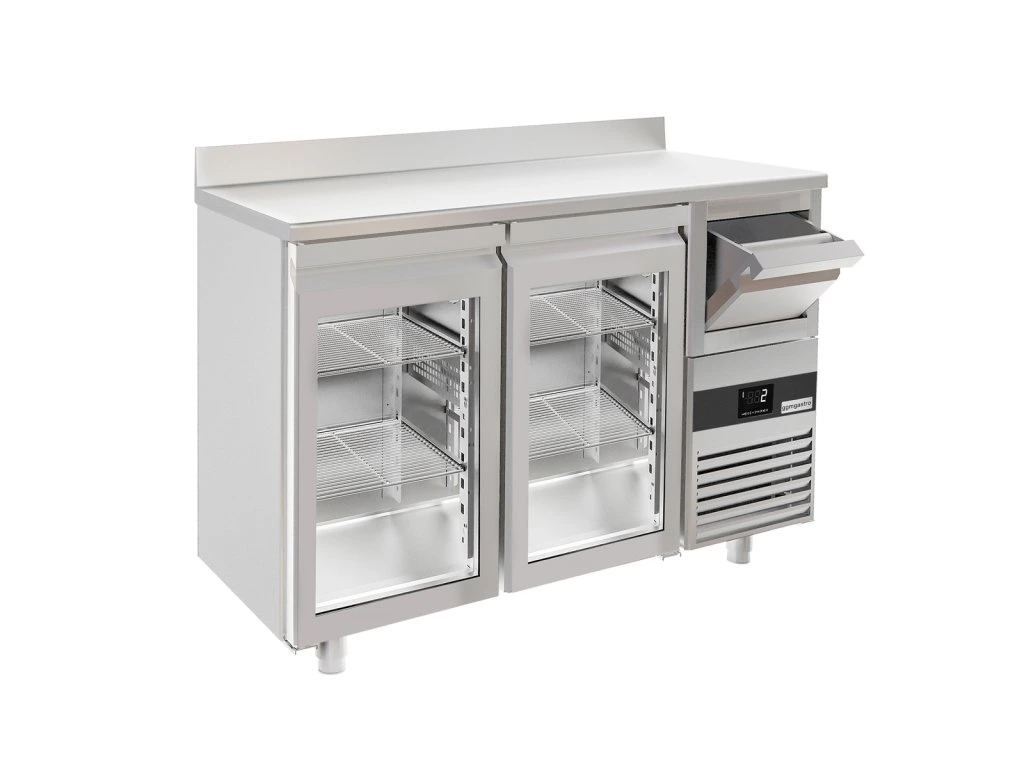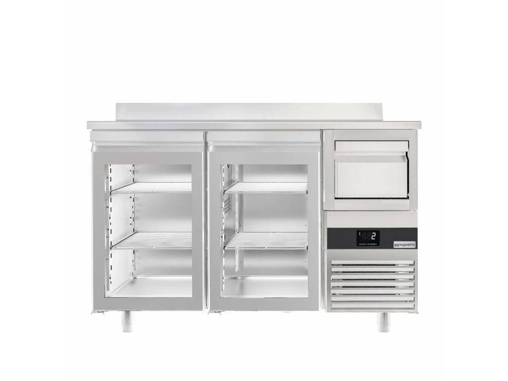 Stół chłodniczy PREMIUM do baru i napojów - 1580x600 mm - 2 szklane drzwi, podstawka i kołatka do kawy