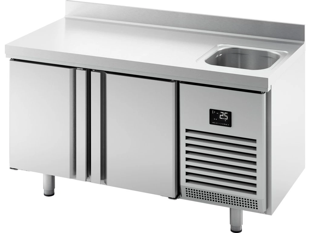 Stół chłodniczy Premium PLUS - 1468x600 mm - z 1 zlewem, 2 drzwiami & panelem tylnym