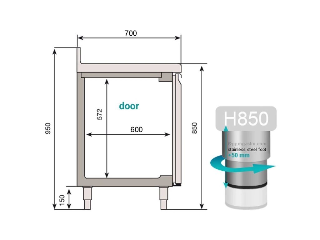 - Regulowane nóżki do 200 mm , osiągalna wysokość całkowita mebli 1.000 mm