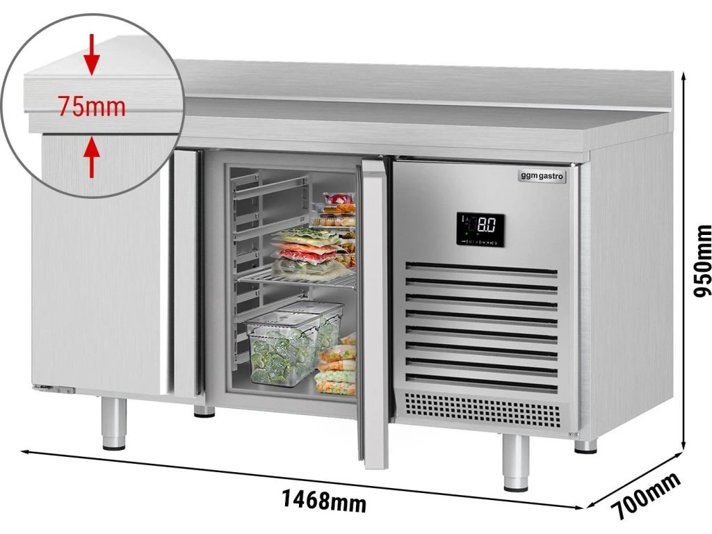 Stół chłodniczy PREMIUM PLUS - 1468x700 mm - z 2 drzwiami & panelem tylnym