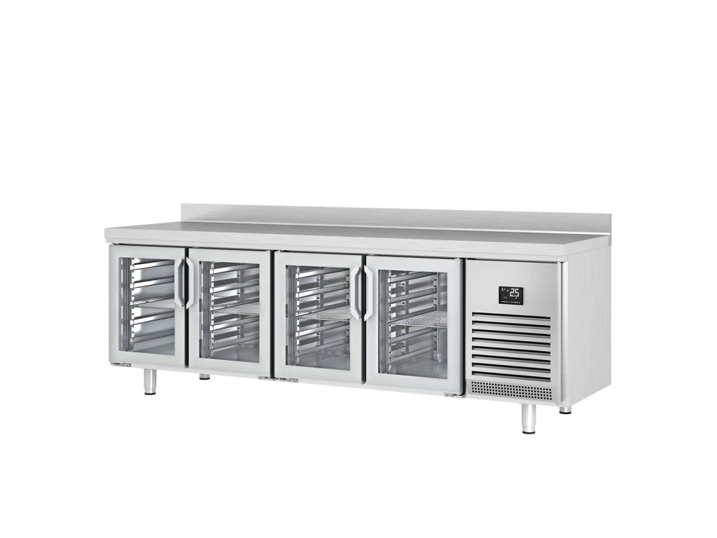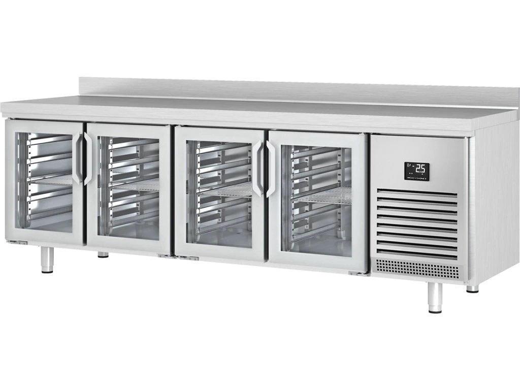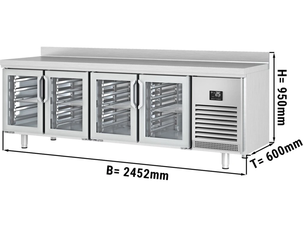 Stół chłodniczy PREMIUM PLUS - 2452x600 mm - z 4 szklanymi drzwiami & panelem tylnym