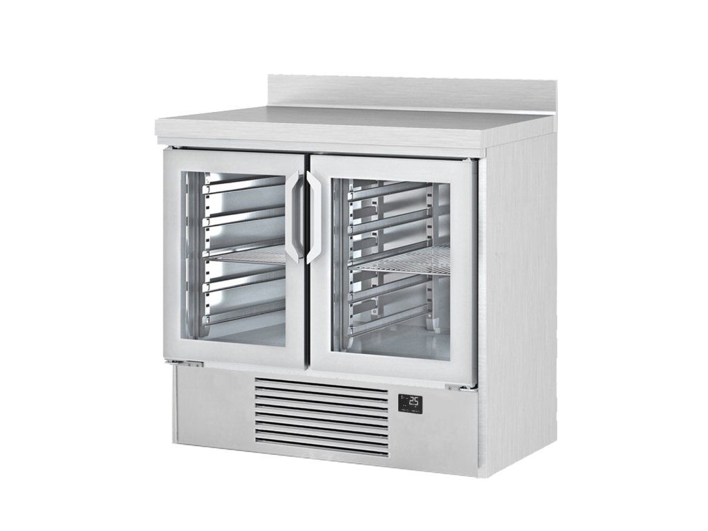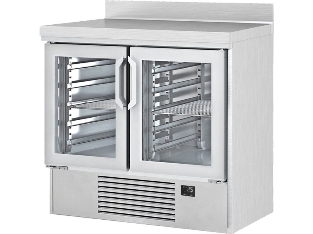Stół chłodniczy PREMIUM PLUS - 978x700 mm - z 2 szklanymi drzwiami & panelem tylnym