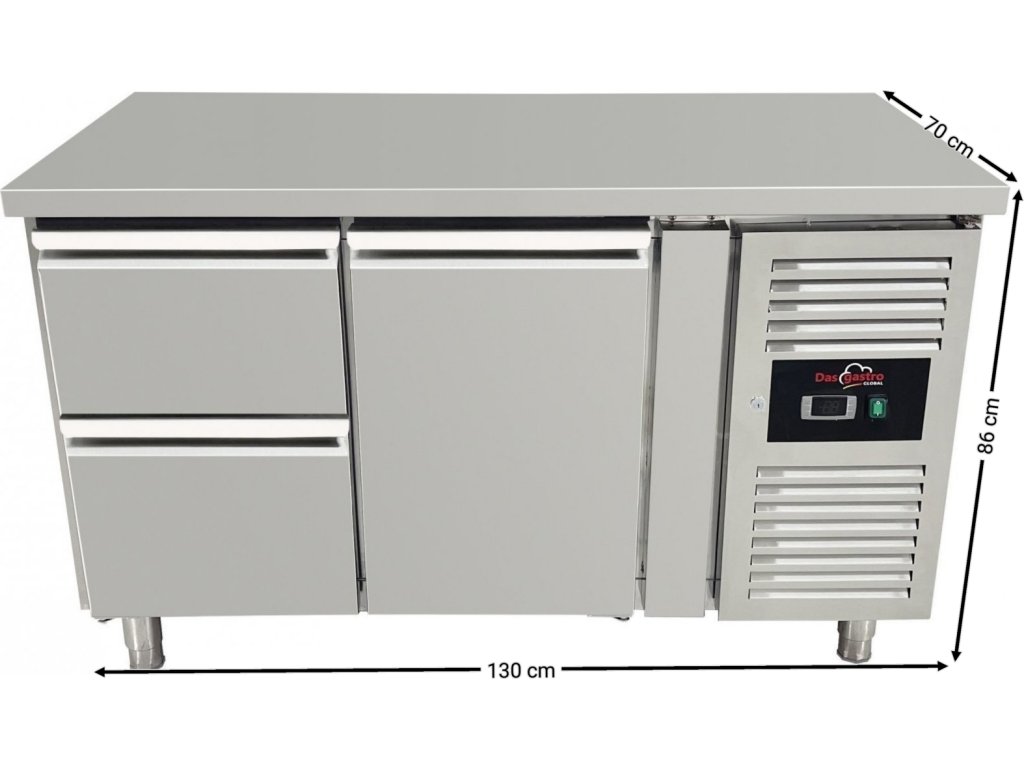 Stół chłodniczy z 1 drzwiami i 2 szufladami po lewej stronie