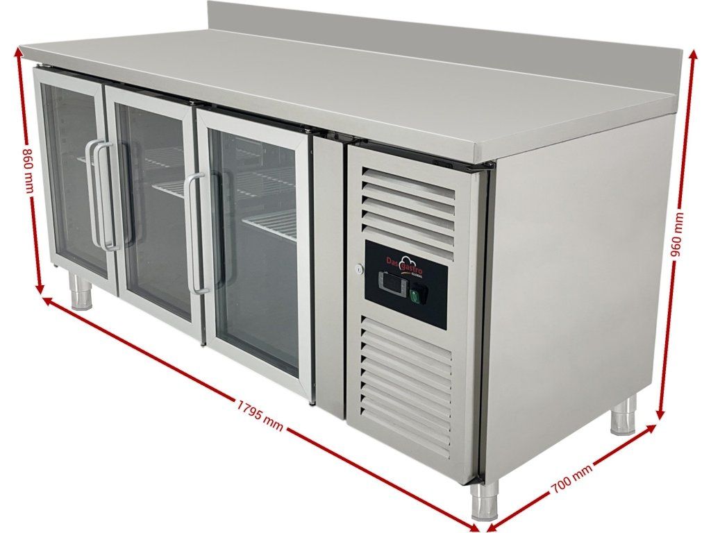 Stół chłodniczy z 3 szklanymi drzwiami i tylną krawędzią