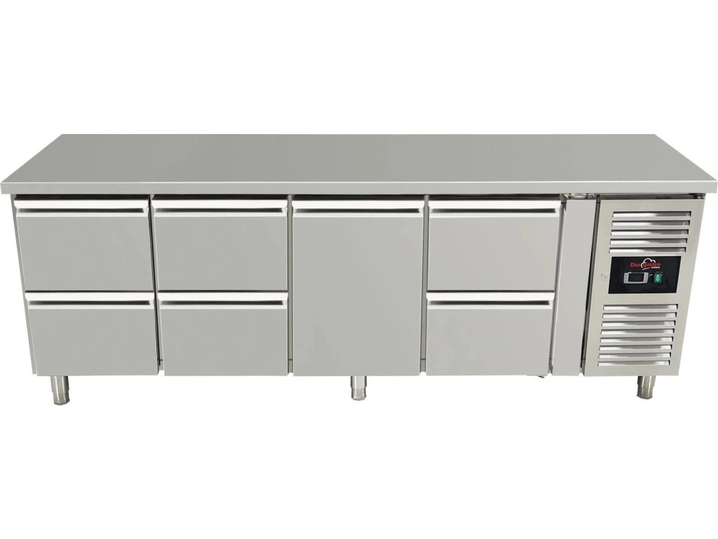 Stół chłodniczy z 6 szufladami i środkowymi drzwiami po prawej stronie