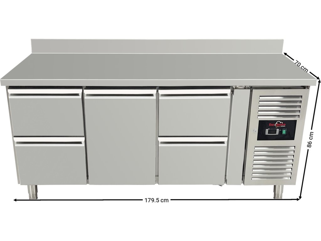 Stół chłodniczy z krawędzią - 4 szuflady i 1 drzwi na środku