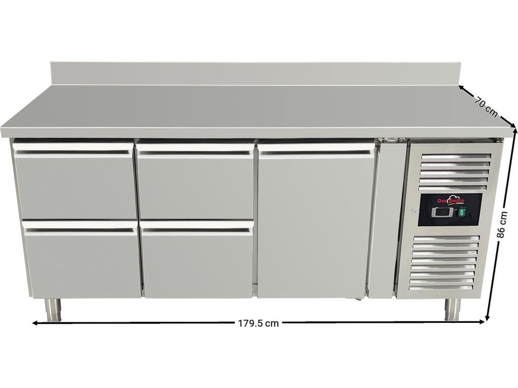 Stół chłodniczy z krawędzią - 4 szuflady i 1 drzwi po prawej stronie