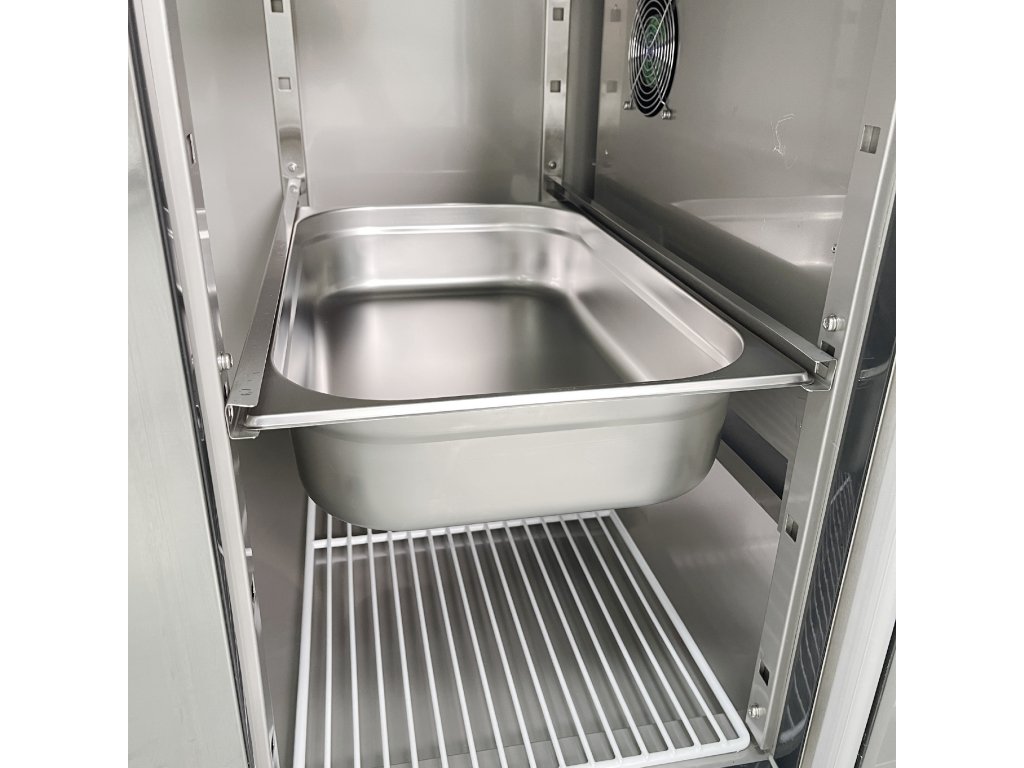 Stół roboczy i chłodniczy o dużej pojemności ze zlewem - idealny do profesjonalnej kuchni