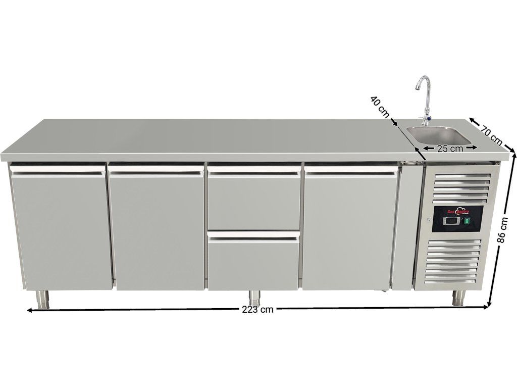 Stół roboczy i chłodniczy o dużej pojemności ze zlewem - idealny do profesjonalnej kuchni
