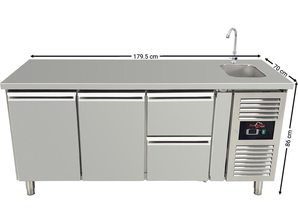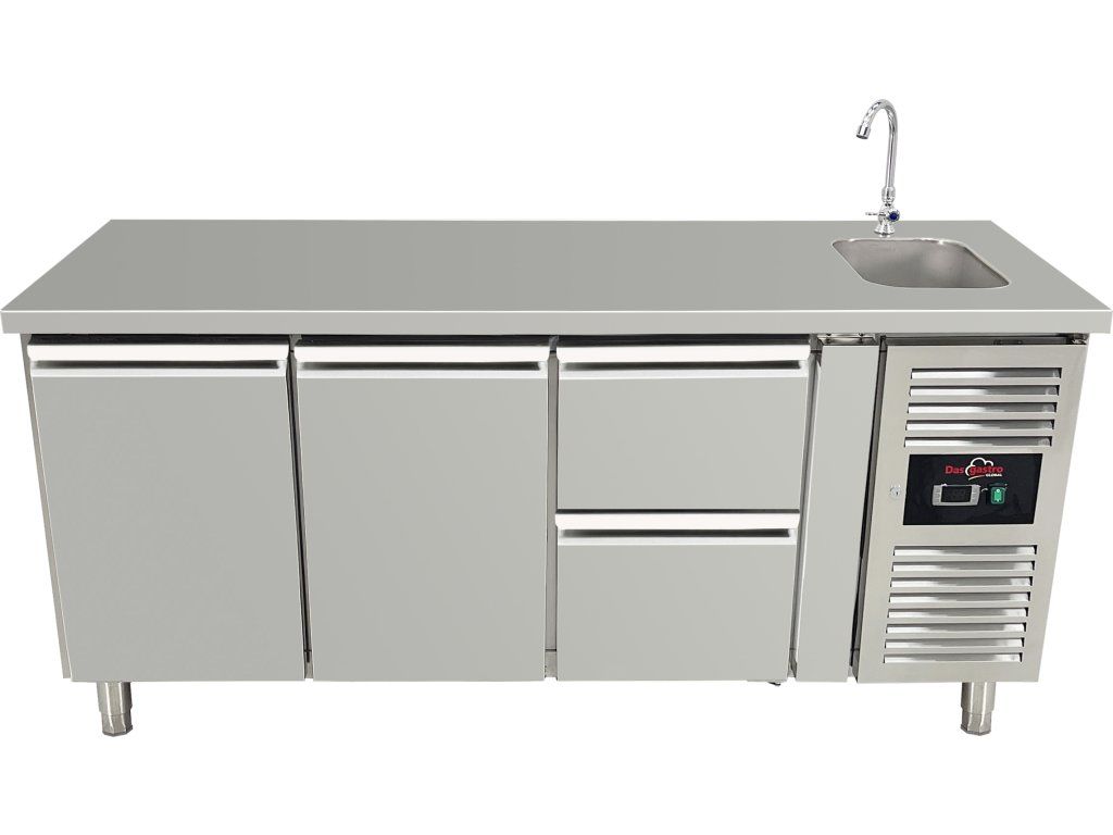 Stół chłodniczy ze zlewem - 2 drzwi i 2 szuflady po prawej stronie