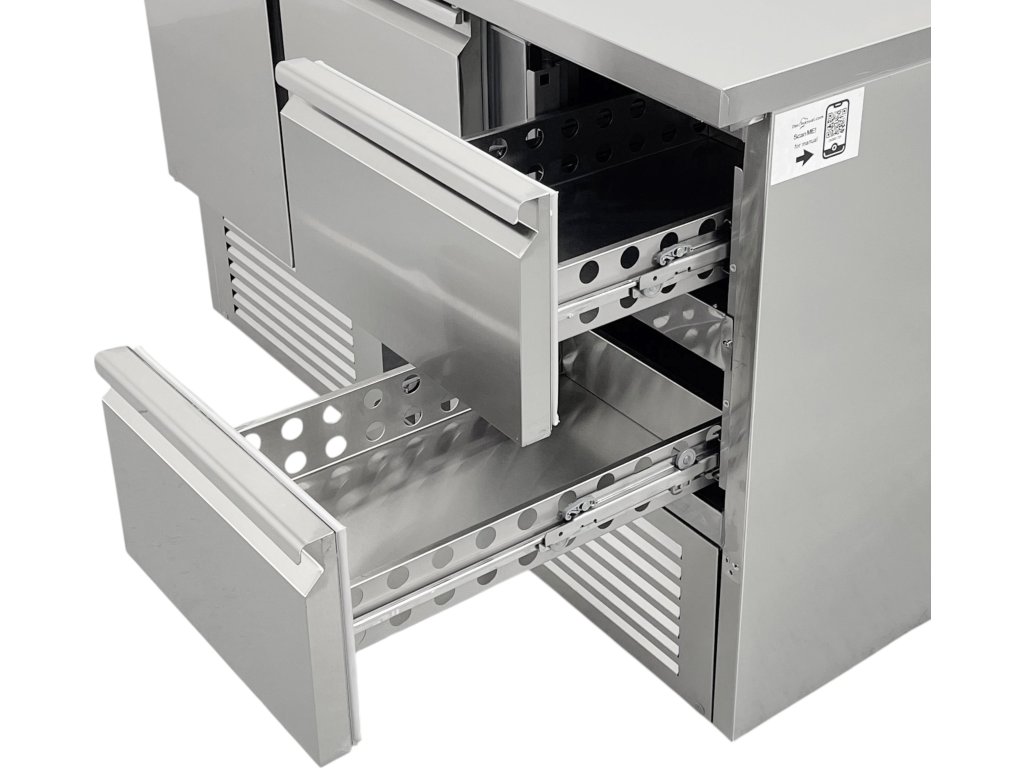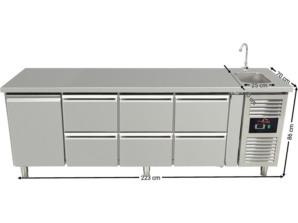 Stół chłodniczy ze zlewem - 6 szuflad i drzwi po lewej stronie