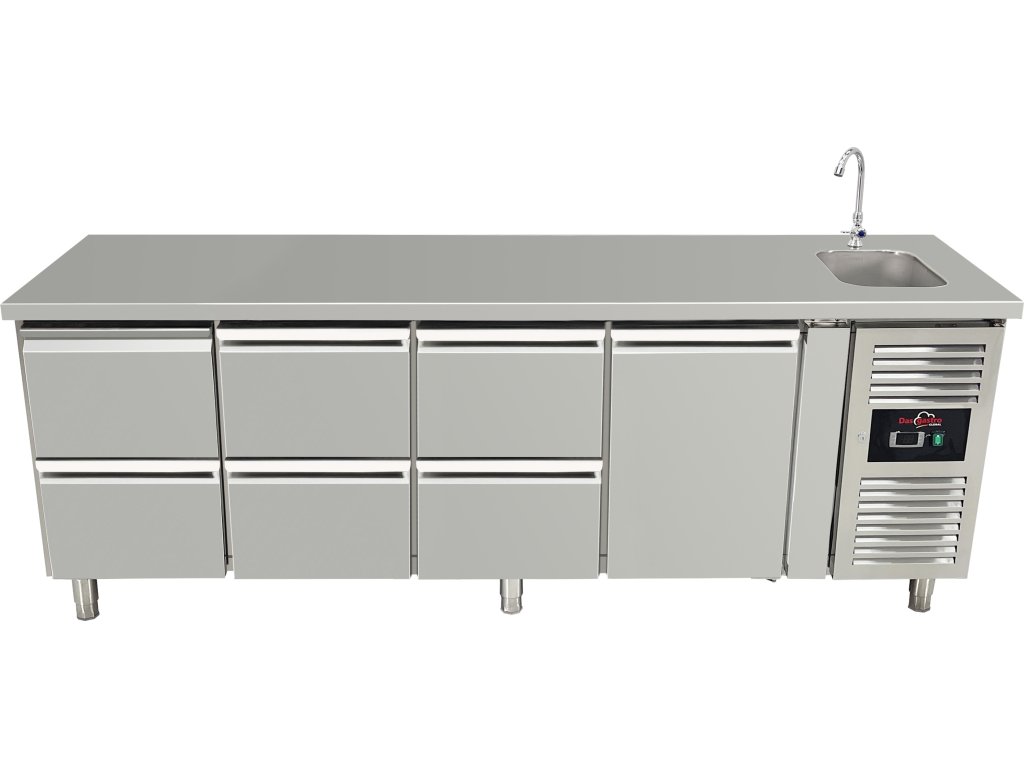 Stół chłodniczy ze zlewem - 6 szuflad i drzwi po prawej stronie