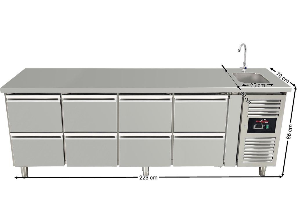 Stół roboczy i chłodniczy o dużej pojemności ze zlewem - idealny do profesjonalnej kuchni
