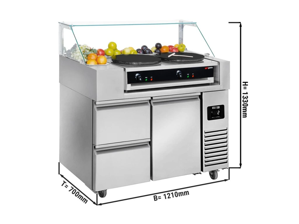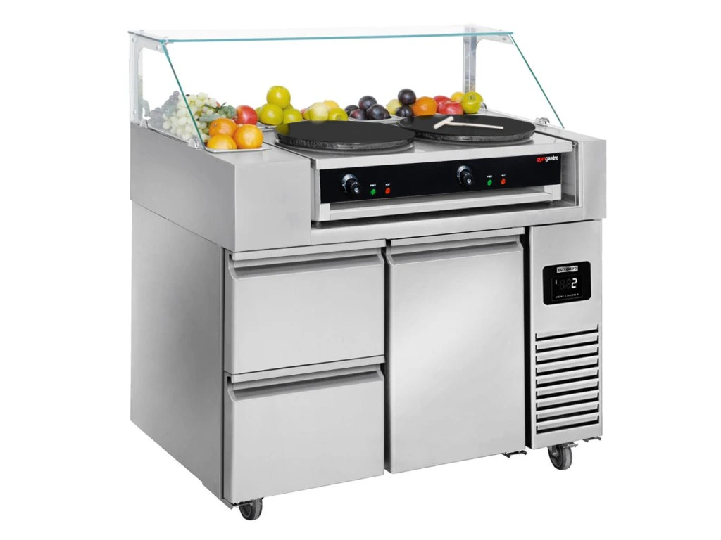 Stół przygotowawczy - 1 drzwi i 2 szuflady - na 9 pojemników GN 1/6 - włącznie z naleśnikarką z 2 płytami