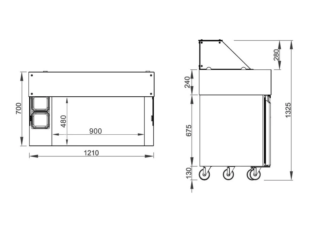 - Z wbudowaną nadstawą chłodniczą - na 9 pojemników GN 1/6