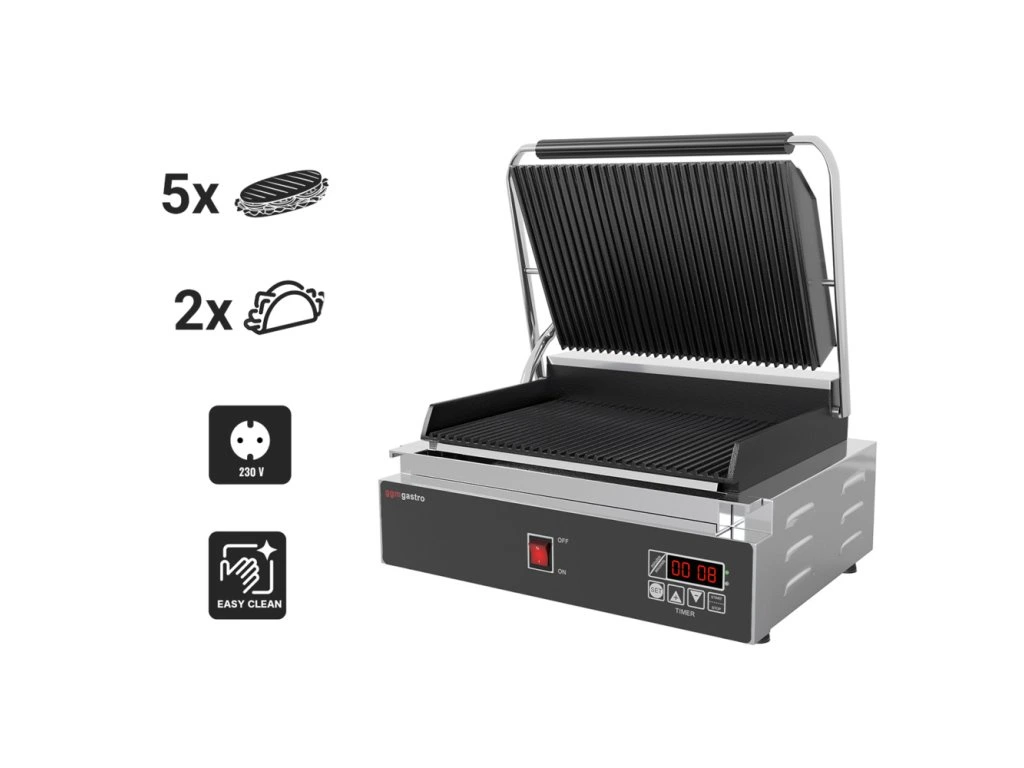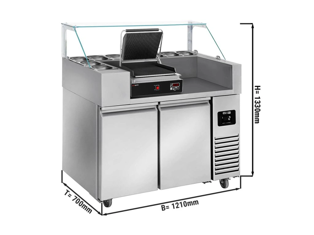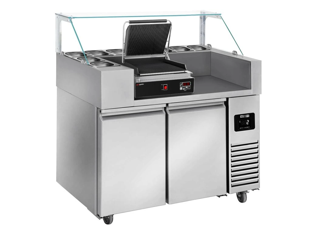 Stół przygotowawczy - 1210 mm - dla 9x GN 1/6 - 2 drzwi - włącznie z cyfrowym grillem kontaktowym