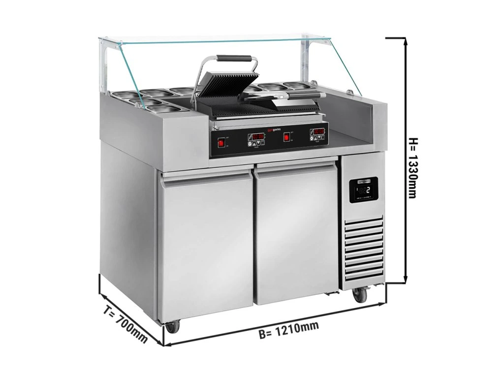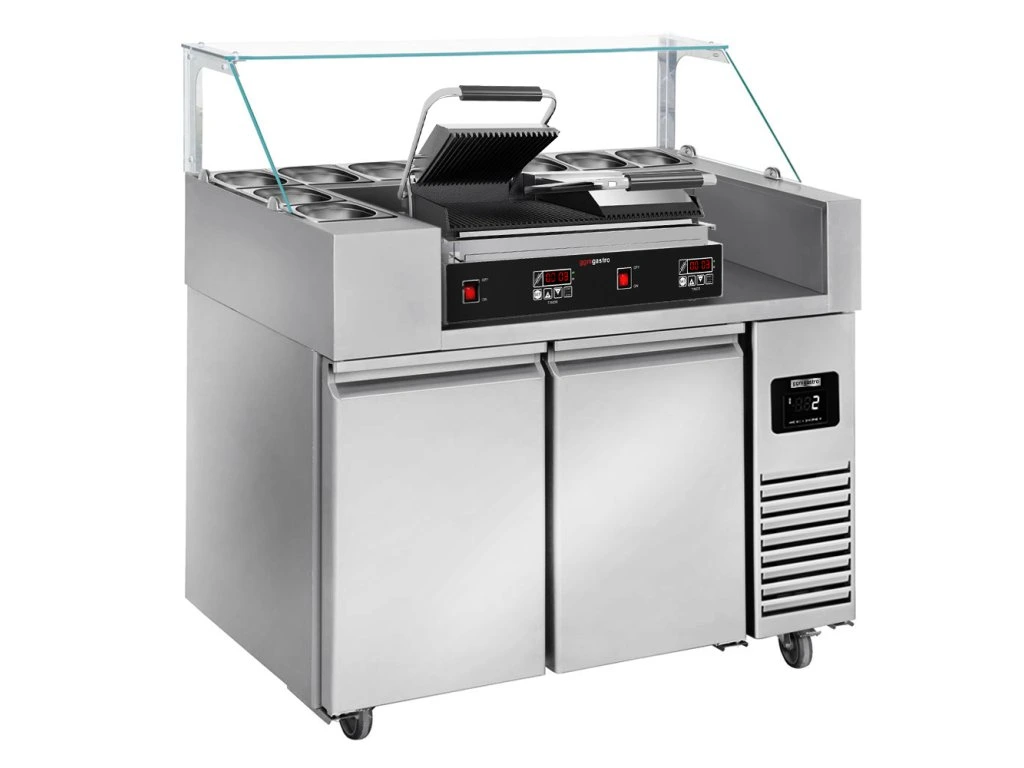 Stół przygotowawczy - 1210 mm - dla 9x GN 1/6 - 2 drzwi - włącznie z grillem kontaktowym