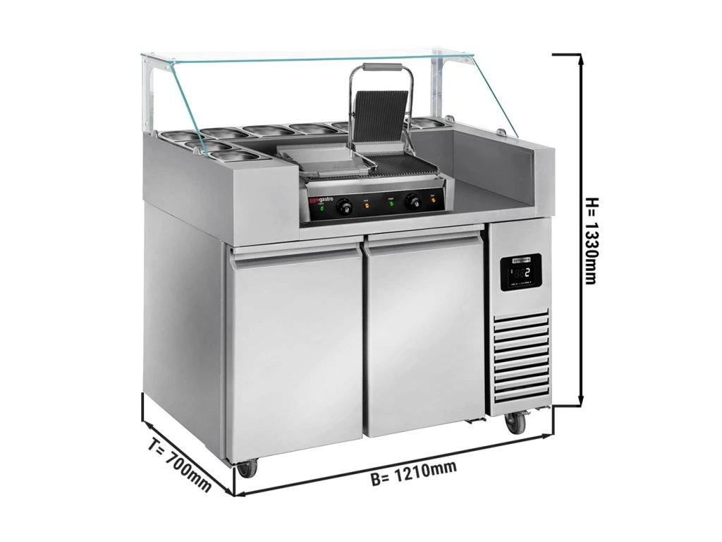 Stół przygotowawczy - 1210 mm - dla 9x GN 1/6 - 2 drzwi - włącznie z grillem kontaktowym