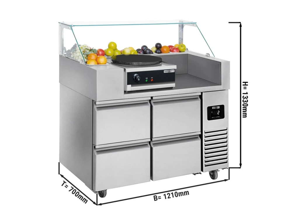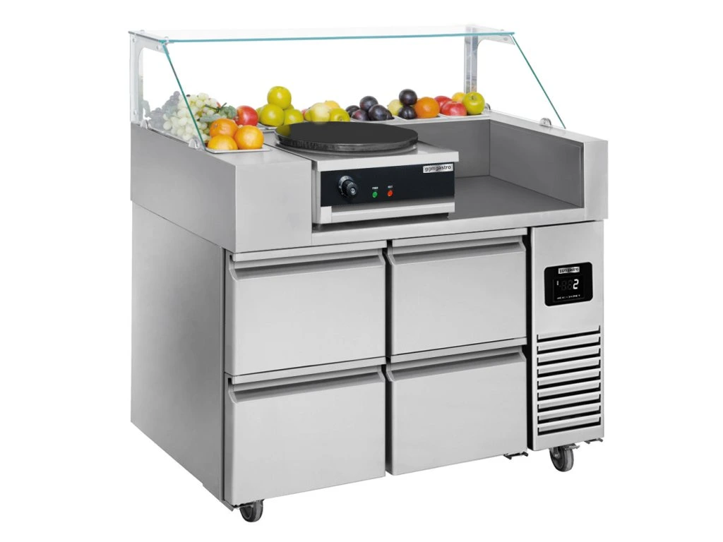 Stół przygotowawczy - 4 szuflady - na 9 pojemników GN 1/6 - włącznie z naleśnikarką