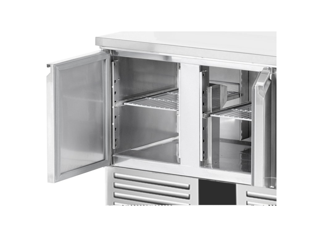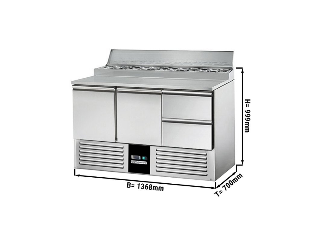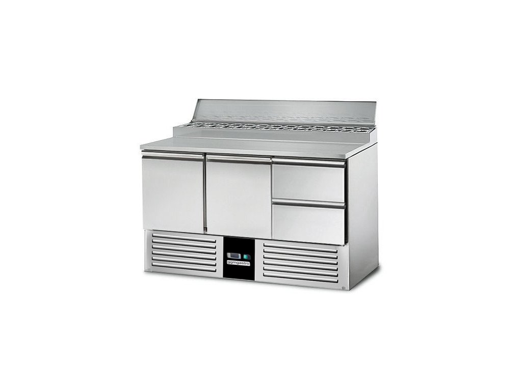 Stół przygotowawczy Mini PREMIUM - 1370 mm - dla 8x GN 1/6 - 2 drzwi i 2 szuflady