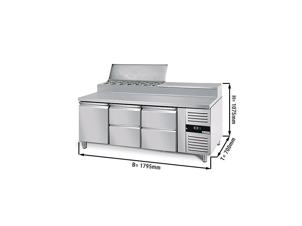 - Z wbudowaną przystawką chłodniczą - dla - 8 pojemników GN 1/3