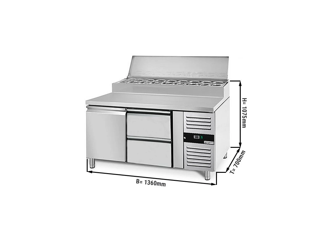 Stół przygotowawczy PREMIUM - 1360 mm - dla 7x GN 1/3 - 1 drzwi i 2 szuflady