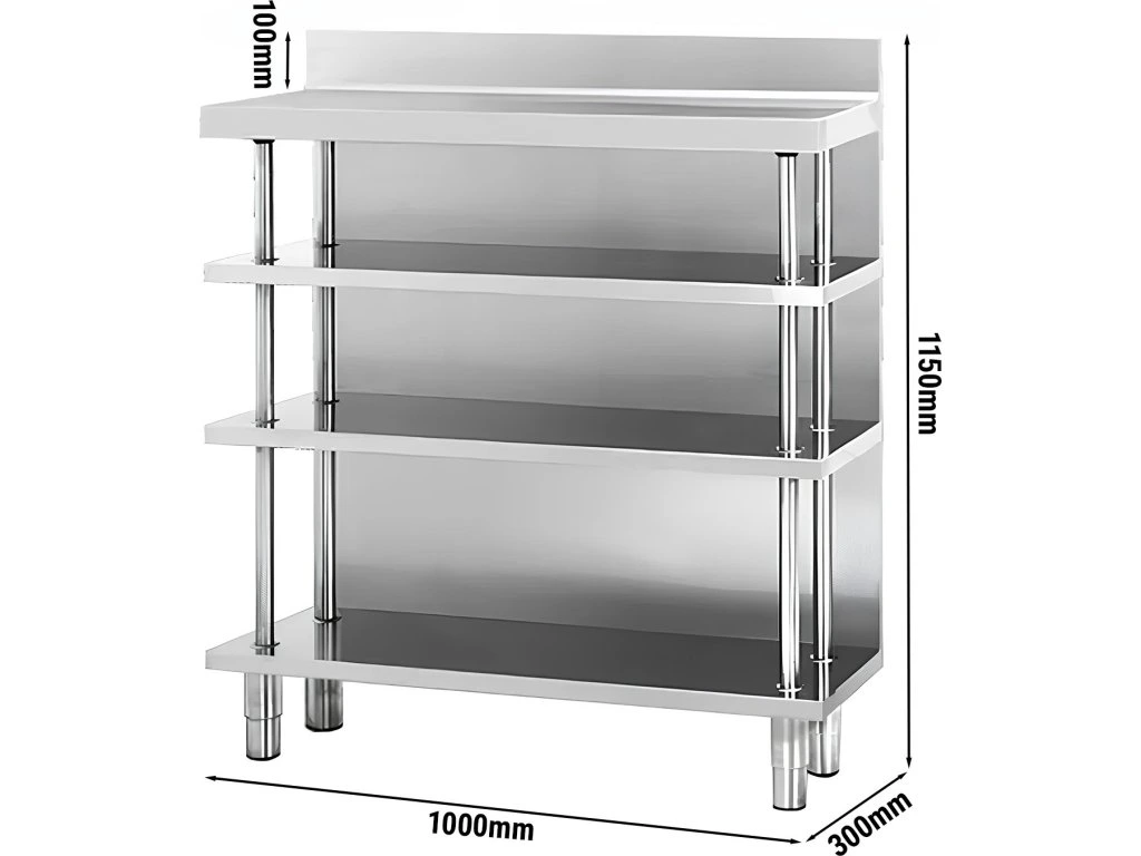 Stół roboczy barowy ze stali nierdzewnej z 4 półkami 1000x300