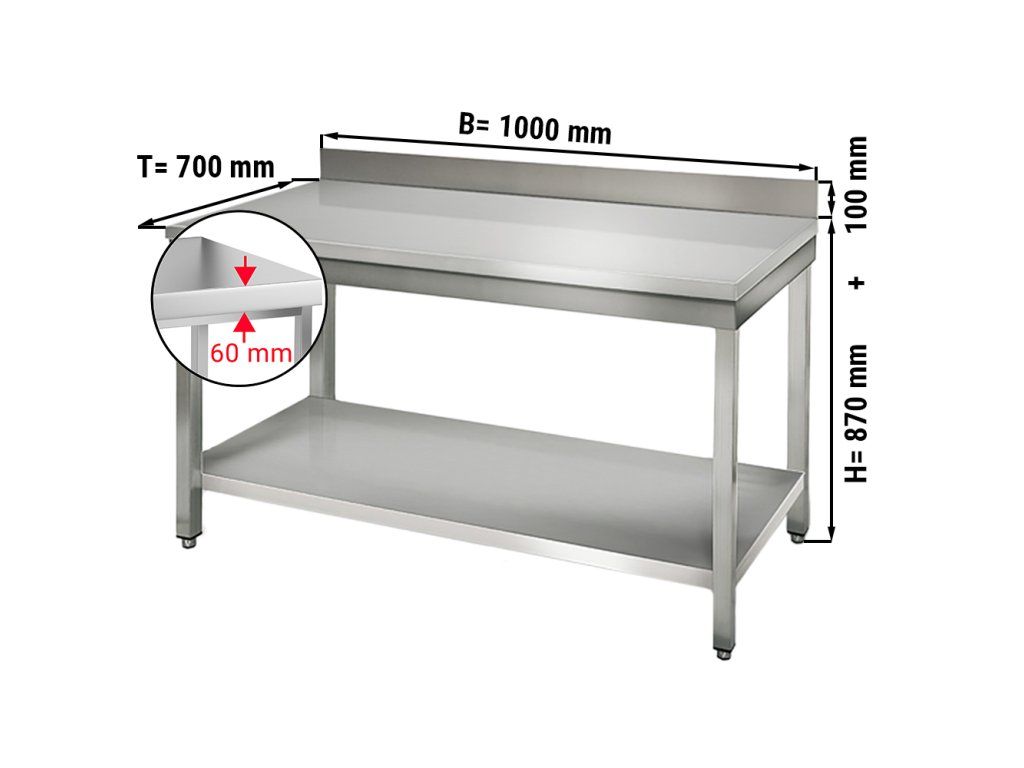Stół roboczy ECO ze stali nierdzewnej - 1000x700 mm - z półką dolną i panelem tylnym