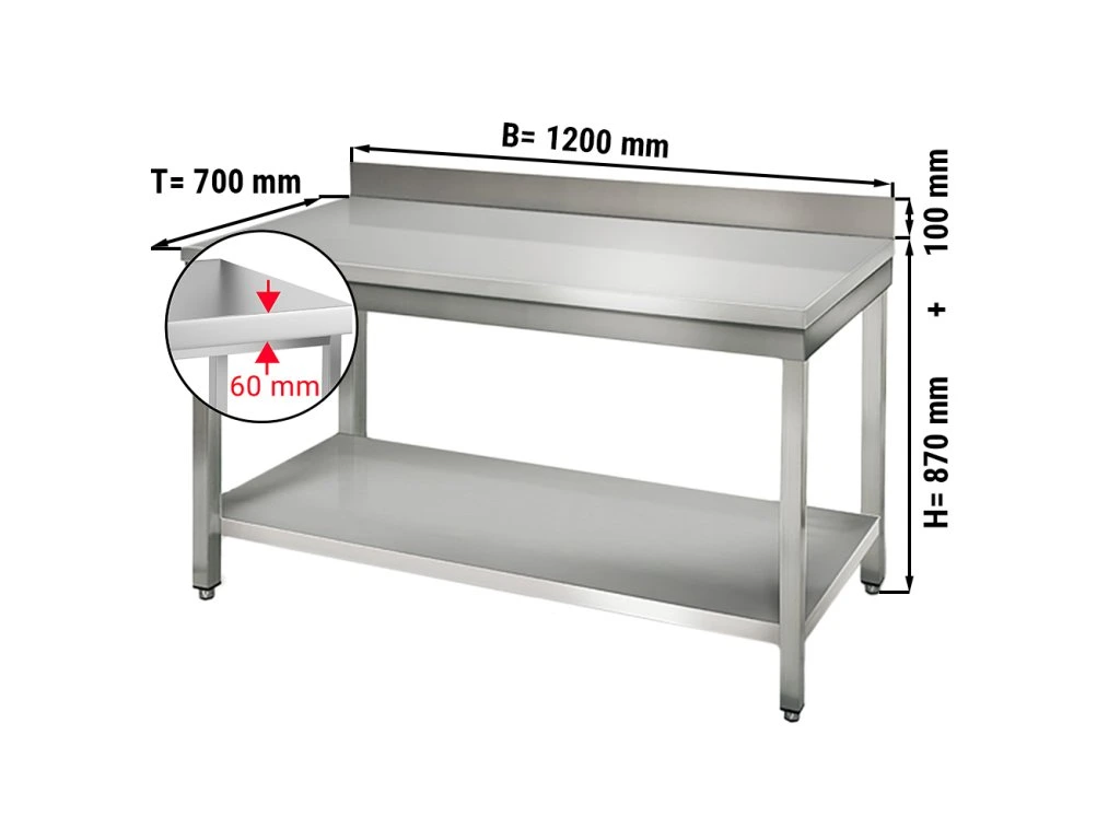 Stół roboczy ECO ze stali nierdzewnej - 1200x700 mm - z półką dolną i panelem tylnym