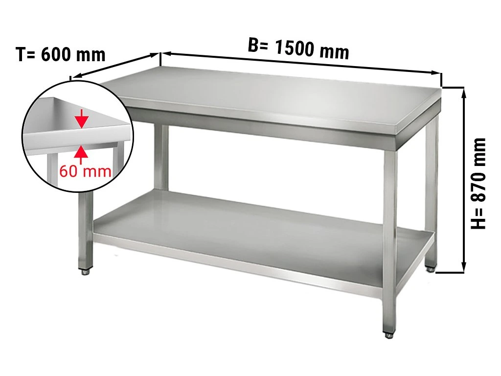 Stół roboczy ECO ze stali nierdzewnej - 1500x600 mm - z półką dolną bez panelu tylnego