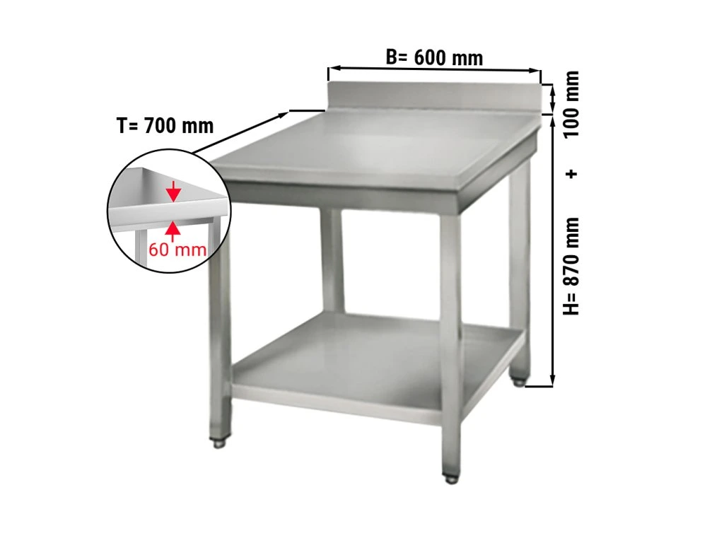 Stół roboczy ECO ze stali nierdzewnej - 600x700 mm - z półką dolną i panelem tylnym