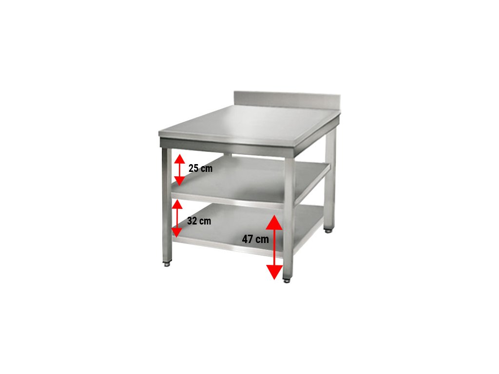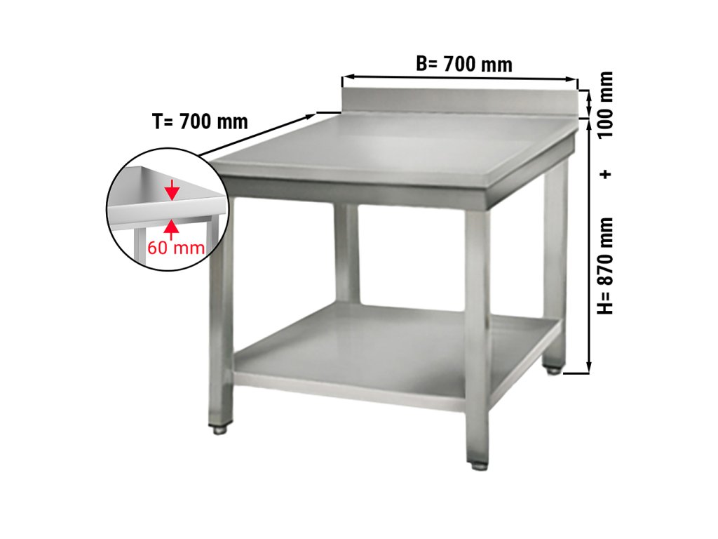 Stół roboczy ECO ze stali nierdzewnej - 700x700 mm - z półką dolną i panelem tylnym