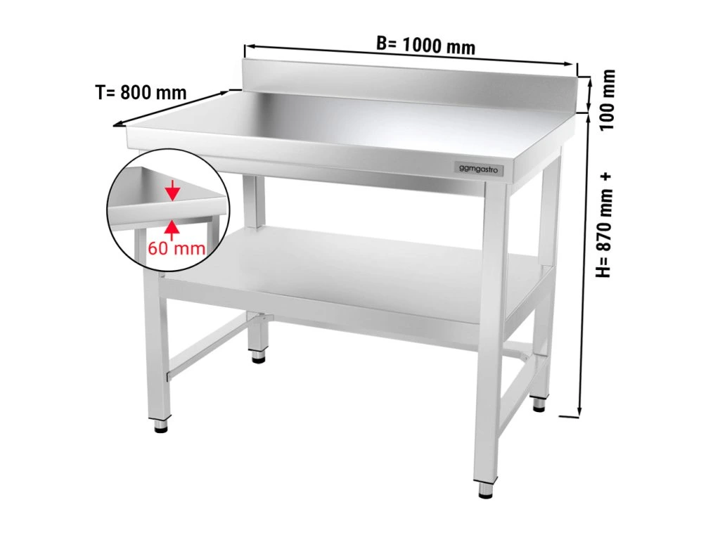 - Blat roboczy z dwoma ściankami ze stali nierdzewnej