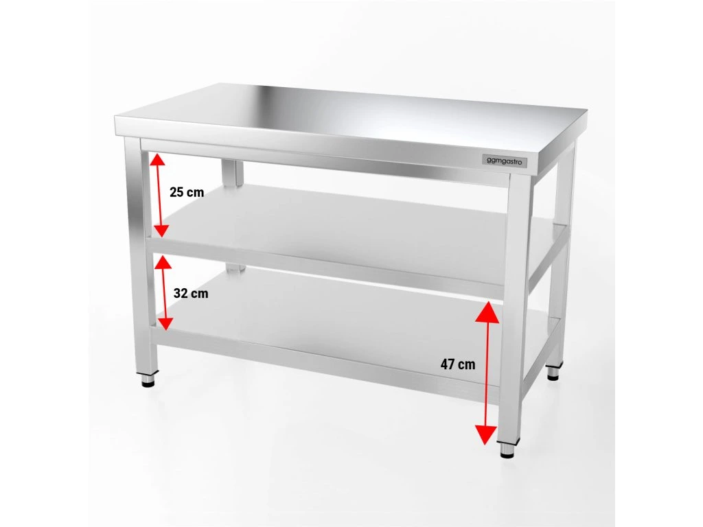 Stół roboczy PREMIUM - 1,2 m - z półką dolną i półką pośrednią