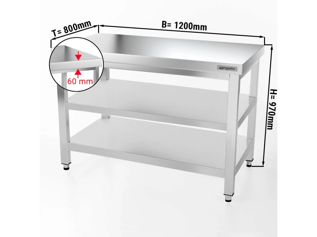 - Płyta robocza z dwoma ściankami ze stali nierdzewnej
