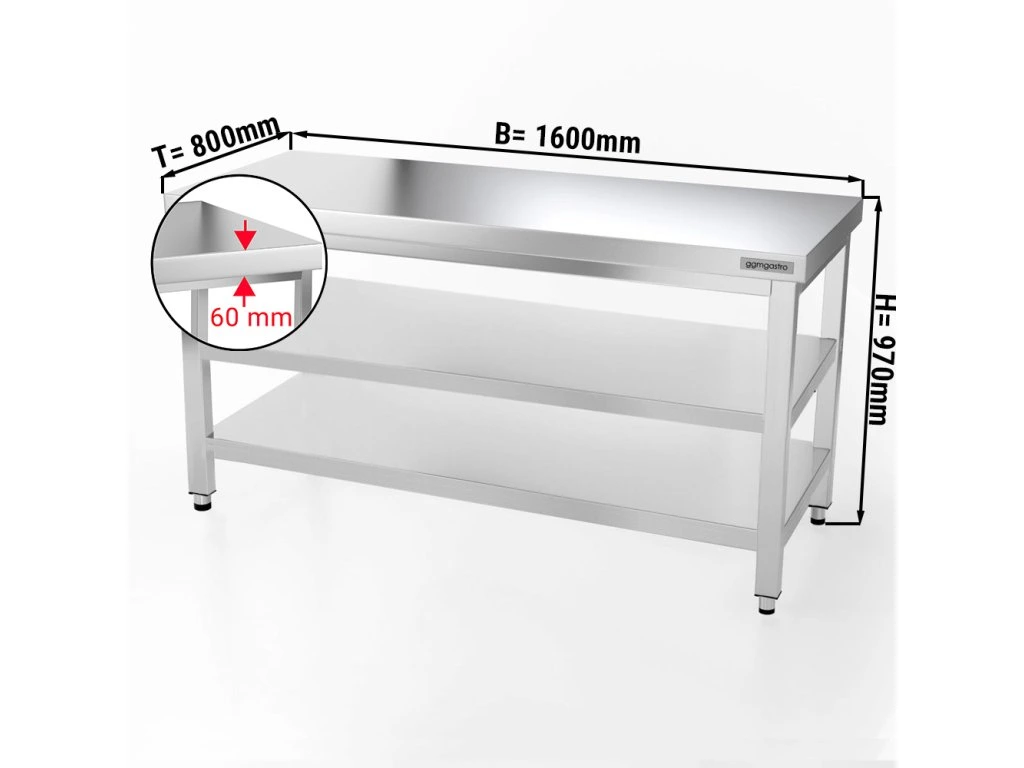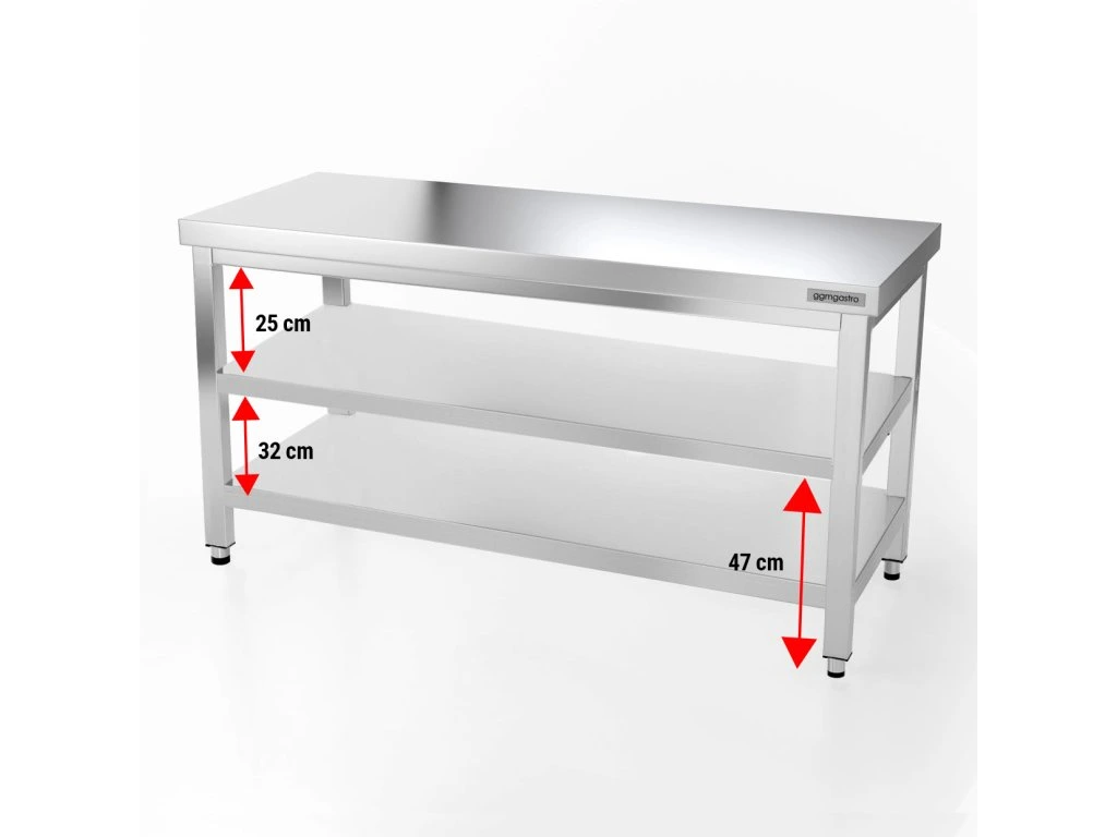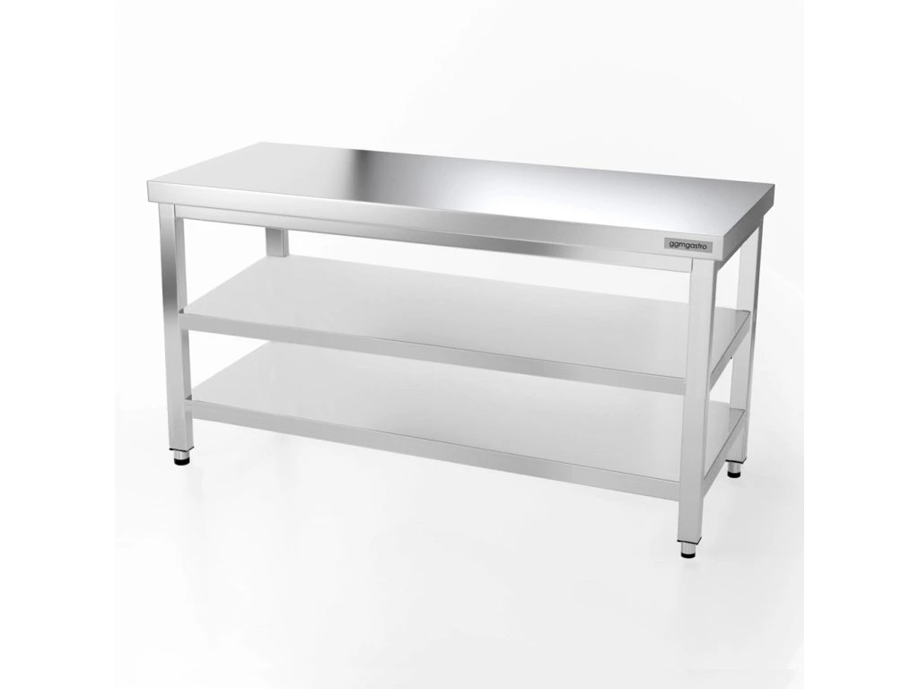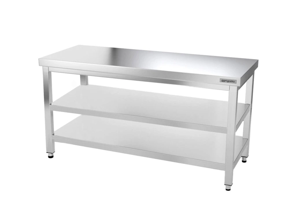 Stół roboczy ze stali nierdzewnej PREMIUM - 1,6 m - z półką dolną i półką pośrednią