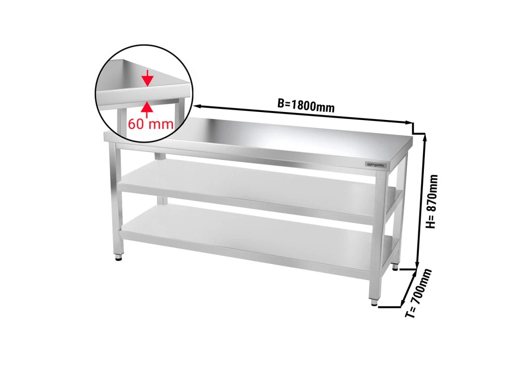 Stół roboczy PREMIUM - 1,8 m - z półką dolną i półką pośrednią