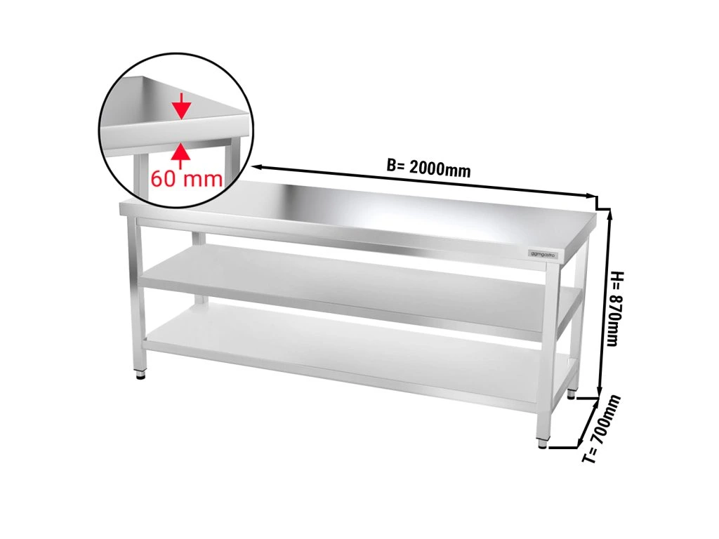 Stół roboczy PREMIUM - 2,0 m - z półką dolną i półką pośrednią